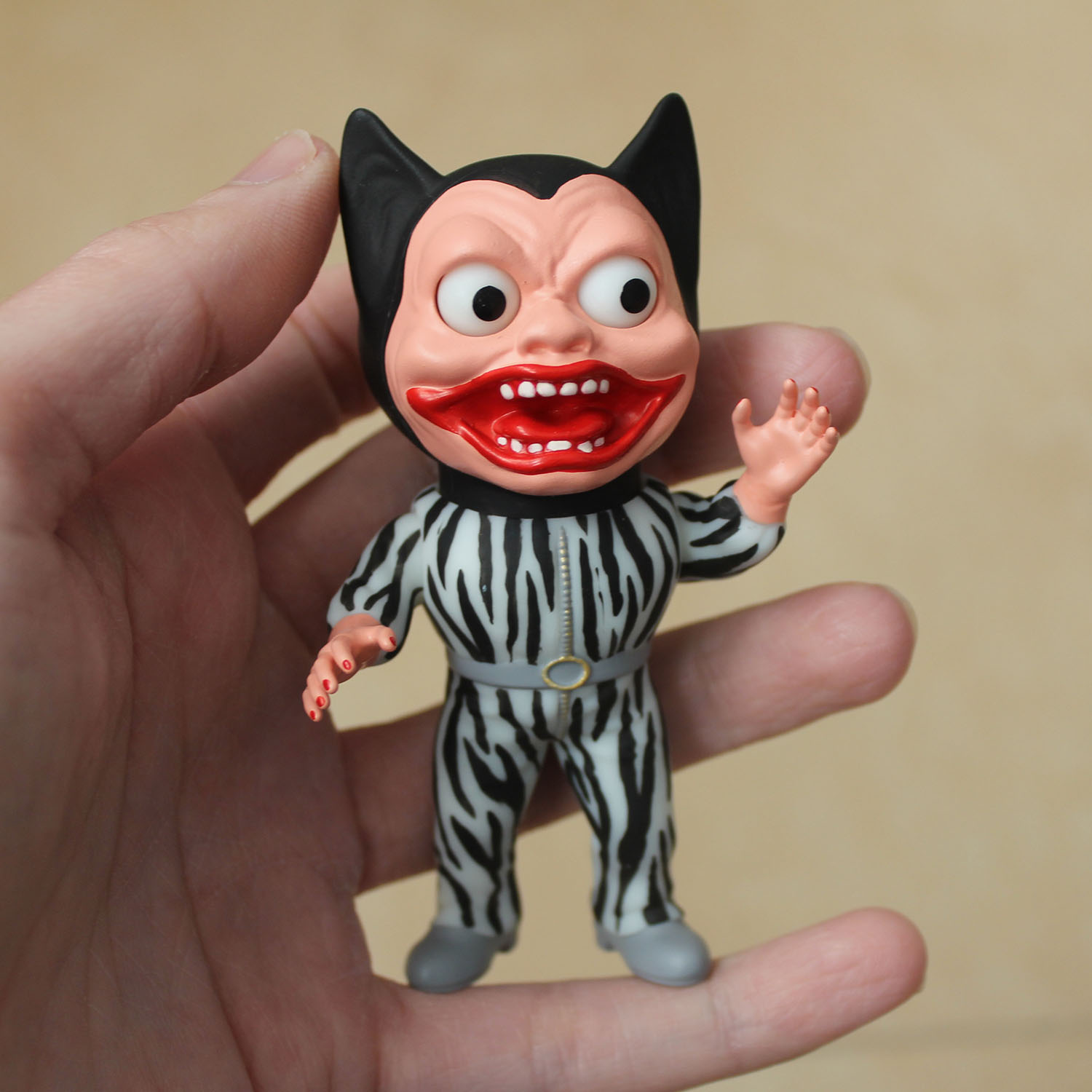 One of a kind -Resin -9,5 cm tall (3.7 inch) -2 points of articulation (arms) -Bagged with header card -Eyes move from side to side -Orders take about 1 week to be ready for shipping.