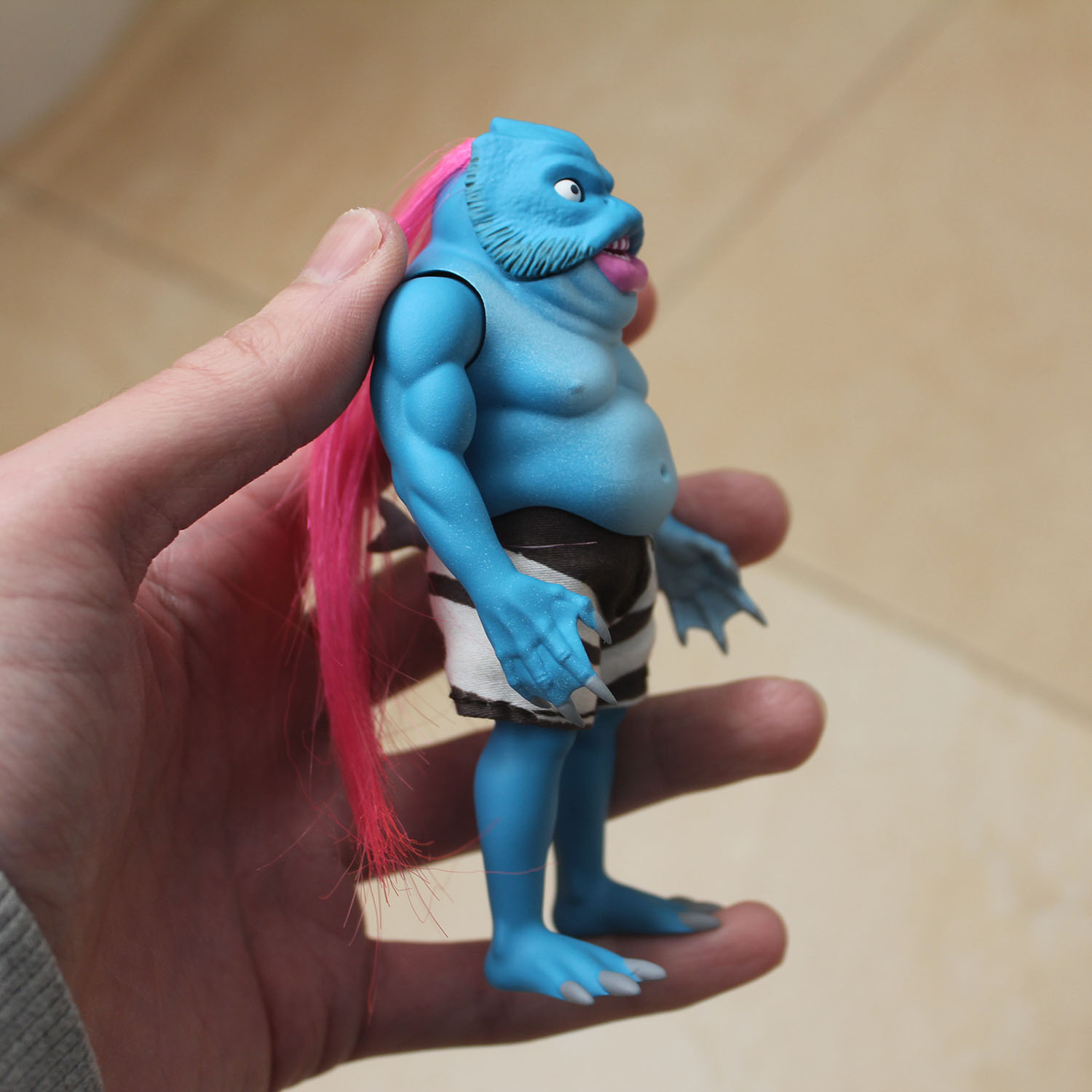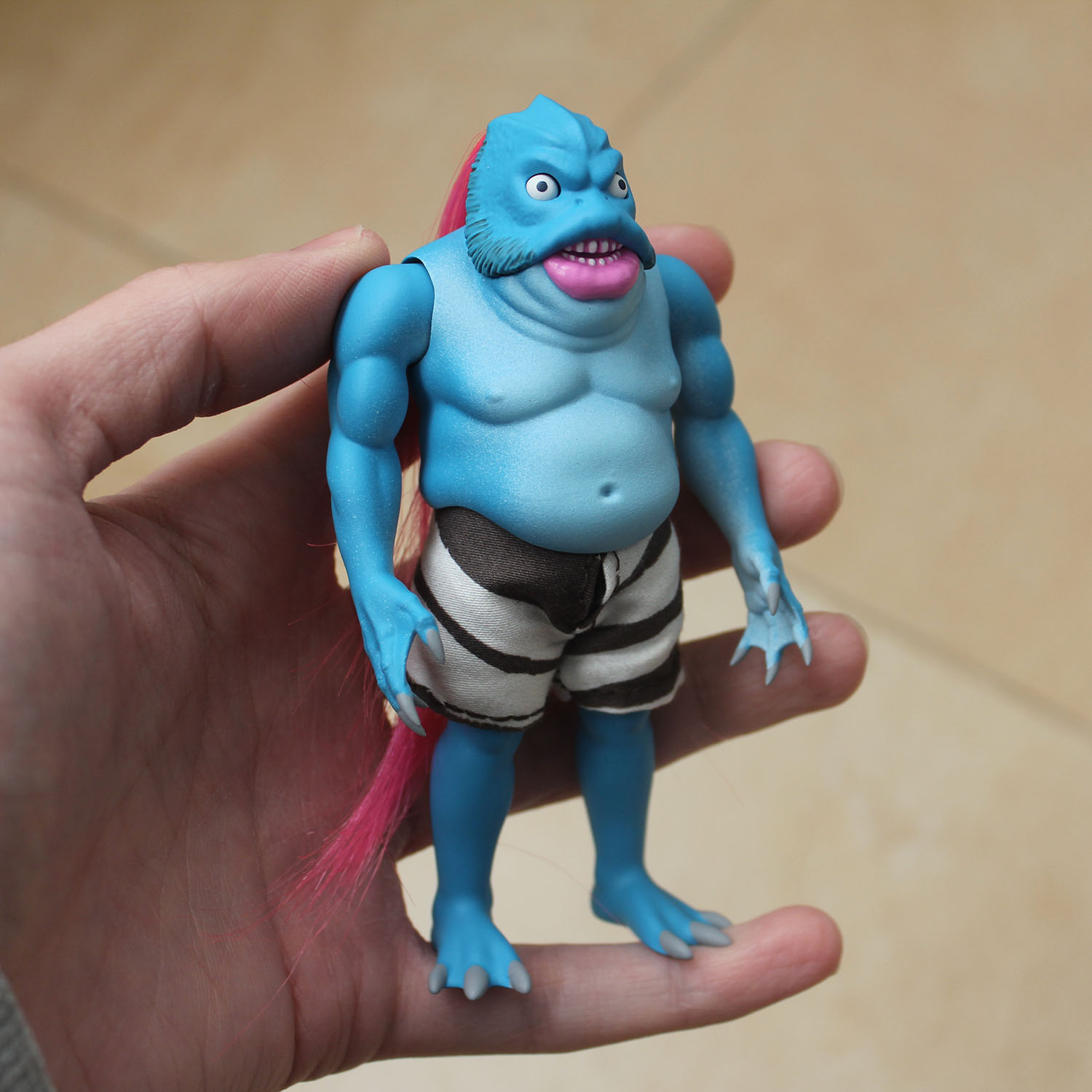 One of a kind -Resin -2 points of articulation (arms) -11'5 cm tall (4.5 inches) -Handmade clothes -Push the tail and a fish will stick out! -Bagged with header card Orders take about 1 week to be ready for shipping