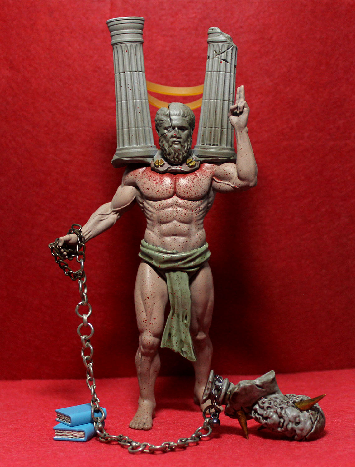 Preorder -Resin -16'5 cm tall (6.4 inches) - Socrates' bust with chain and books included -Plato's work "Symposium" can be thrown using the slingshot -Bagged with header card Orders take about 2 weeks to be ready for shipping