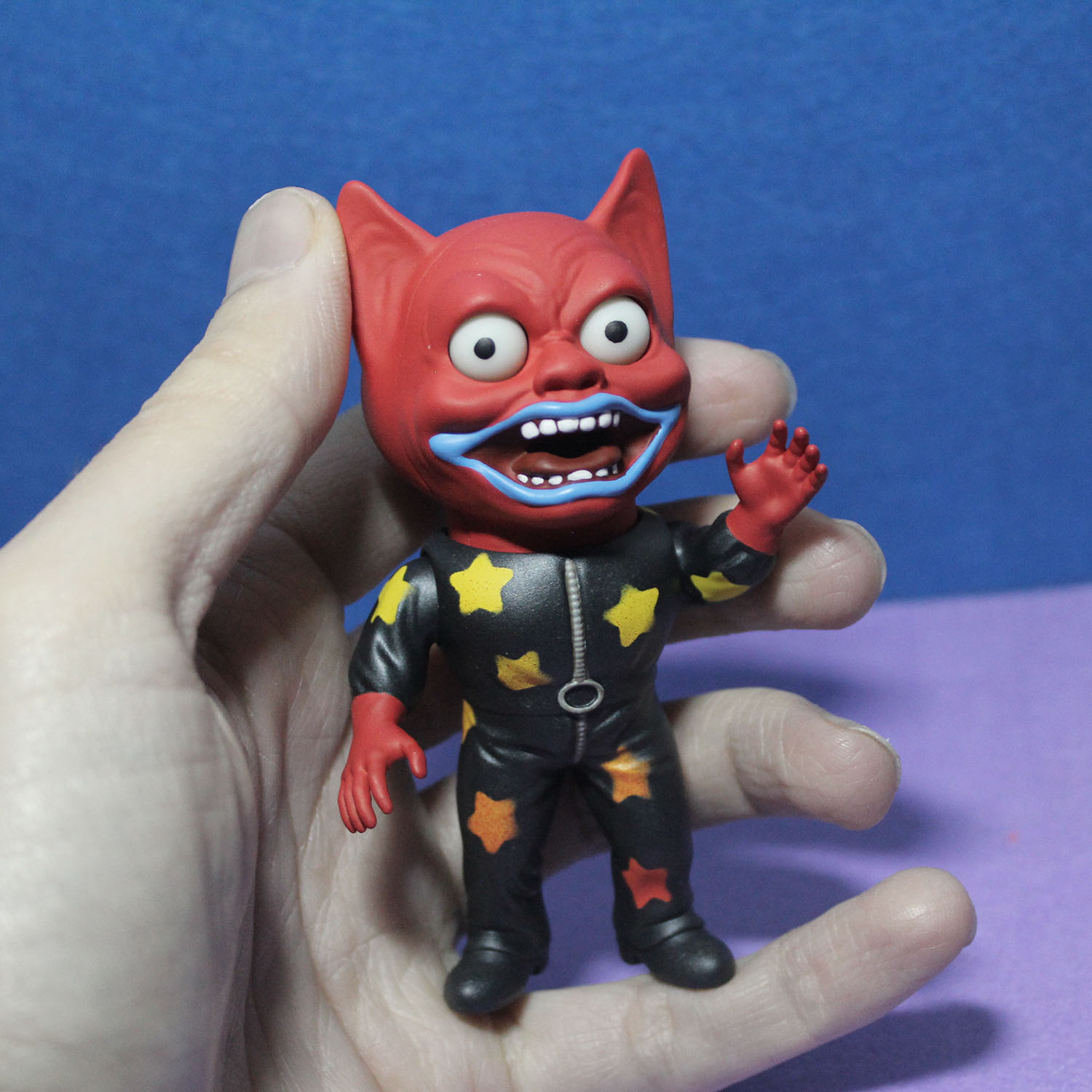 One of a kind -Resin -9,5 cm tall (3.7 inch) -2 points of articulation (arms) -Bagged with header card -Eyes move from side to side -Orders take about 1 week to be ready for shipping.