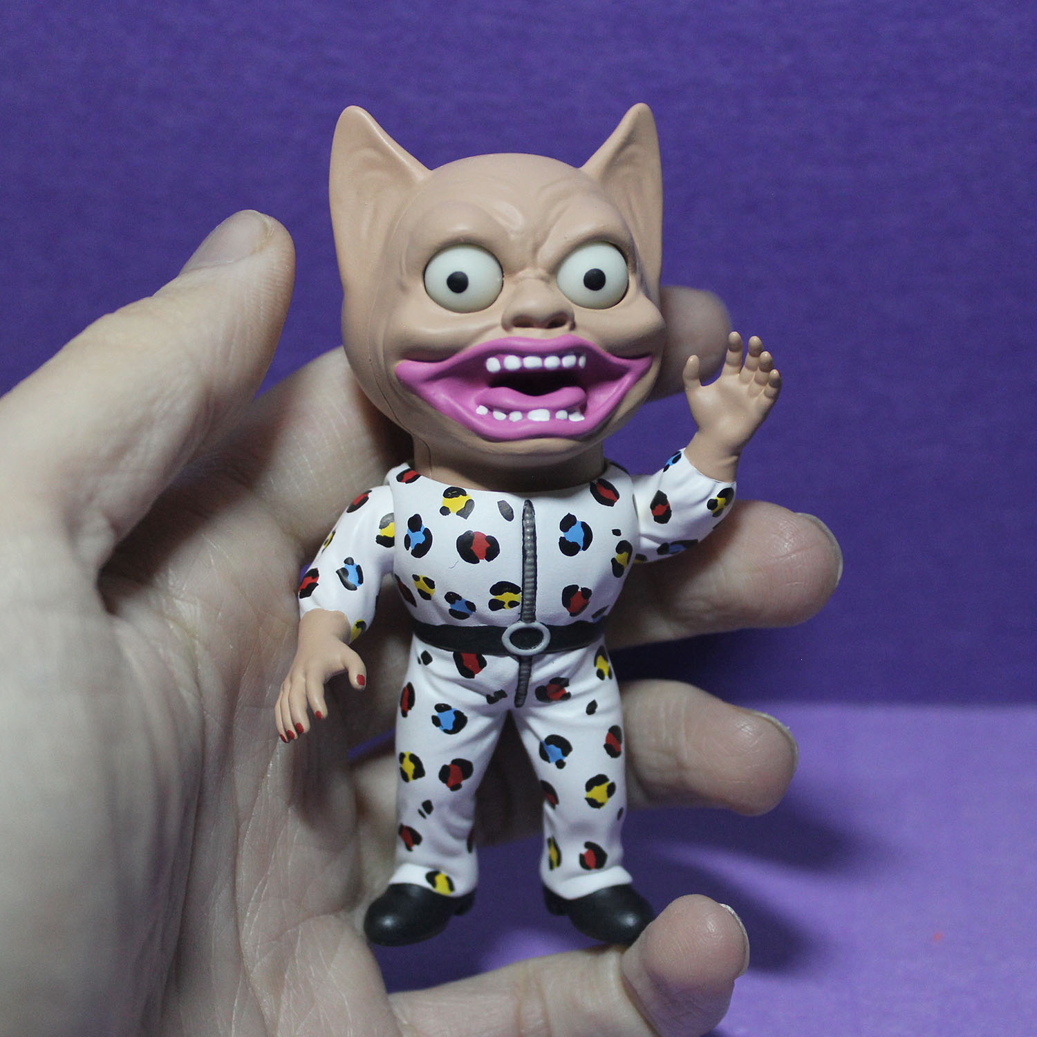 One of a kind -Resin -9,5 cm tall (3.7 inch) -2 points of articulation (arms) -Bagged with header card -Eyes move from side to side -Orders take about 1 week to be ready for shipping.